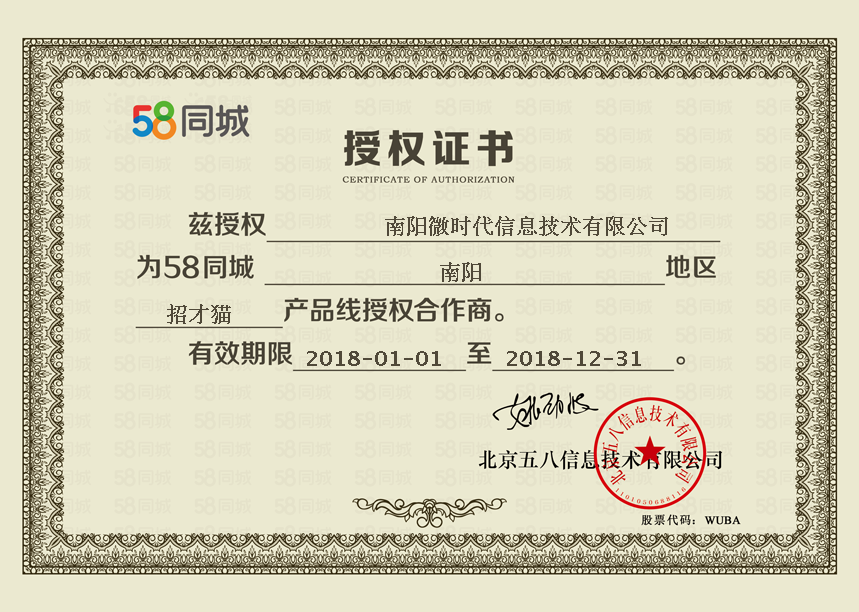 58同城招聘授权书